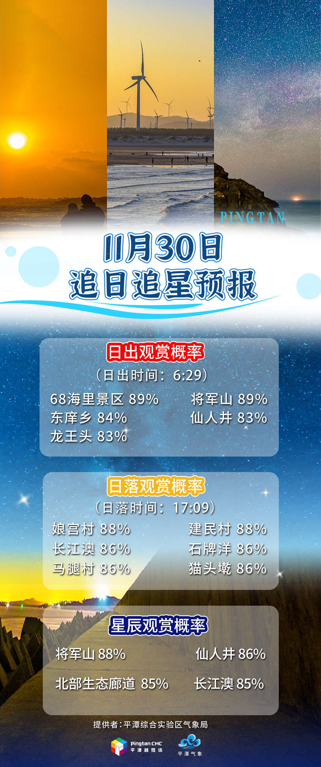 追日追星預報丨11月30日,“追日”概率68海里景區89%,“追星”概率將軍山88%