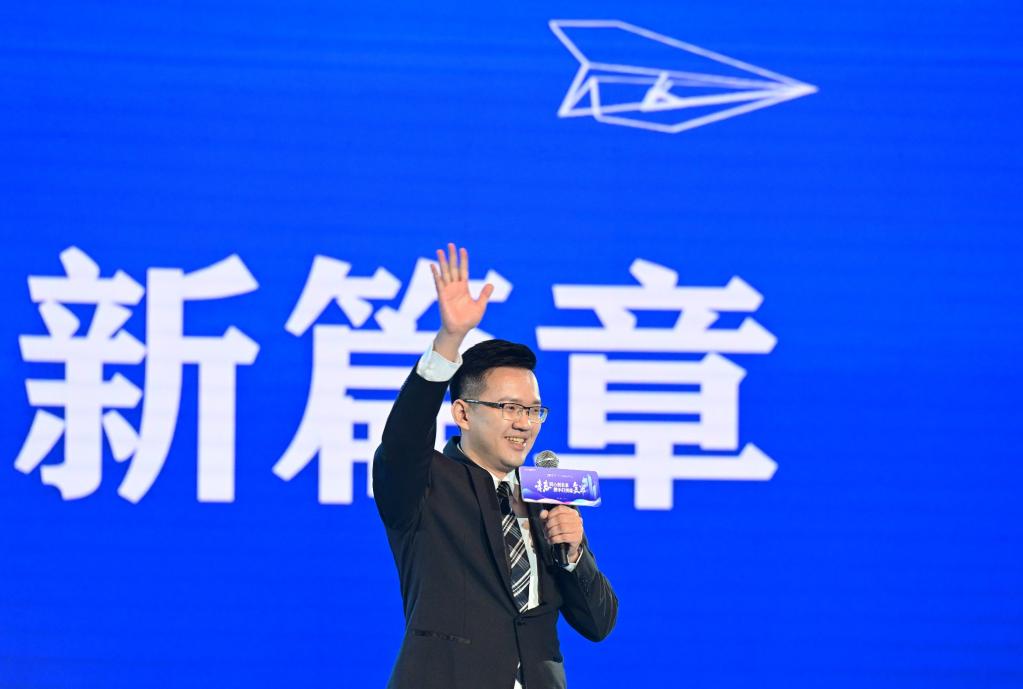 6月16日,第二十一屆海峽青年論壇開幕式現場,臺灣青年李偉國講述在大陸創業經歷。新華社記者 魏培全 攝