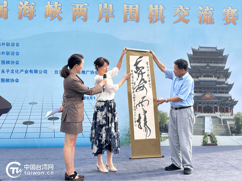 臺灣參賽隊向云南參賽隊贈送“弈海云揚”書法(中國臺灣網記者 葉春祿 攝)