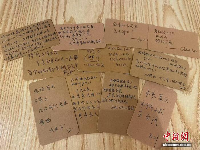 在餐吧內(nèi),黃晾煒特意設(shè)置了一個(gè)留言箱。翻開留言卡,有人稱“(這里是)疲憊生活中最大的慰藉”,有人表示“彌補(bǔ)了沒去臺(tái)灣交換的一點(diǎn)小遺憾”,還有人說“來自對(duì)岸的味道,期待有一天能夠去到美妙的小島”……