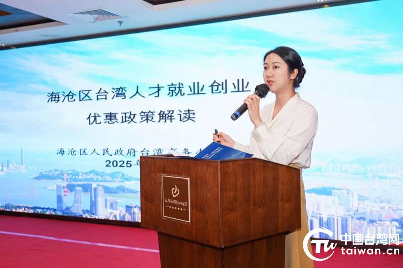 活動現場,海滄區臺辦進行惠臺政策宣講。 (中國臺灣網發)